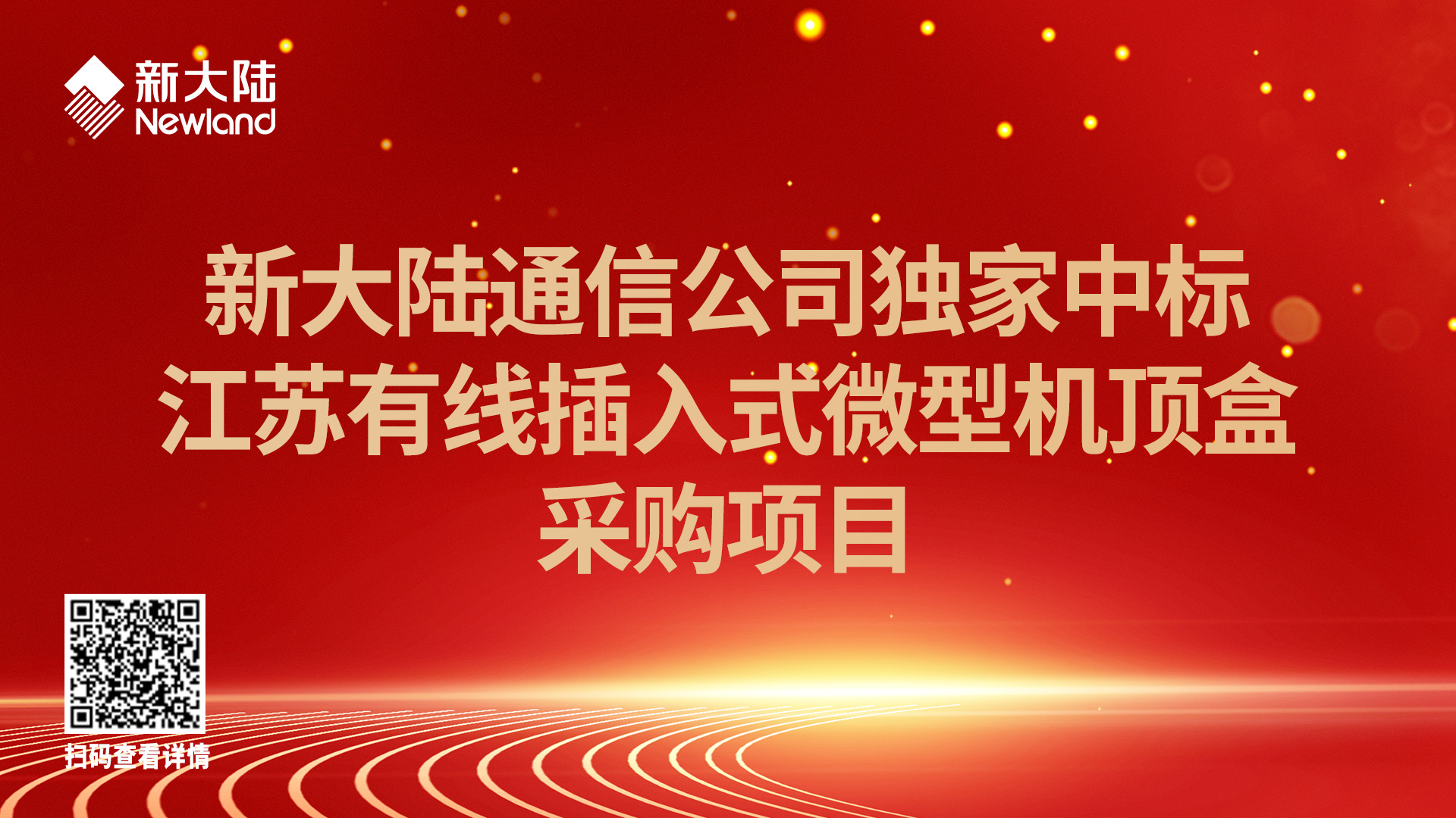 近日,江苏省有线信息网络股份有限公司(以下简称:江苏有线)发布插入式微型机顶盒采购项目,福建雷火竞技通信科技股份有限公司(以下简称:雷火竞技通信公司)独家中标。这是全国首次插入式微型机顶盒批量采购招标,标志着插入式微型机顶盒试点推广和批量部署工作已经起步。