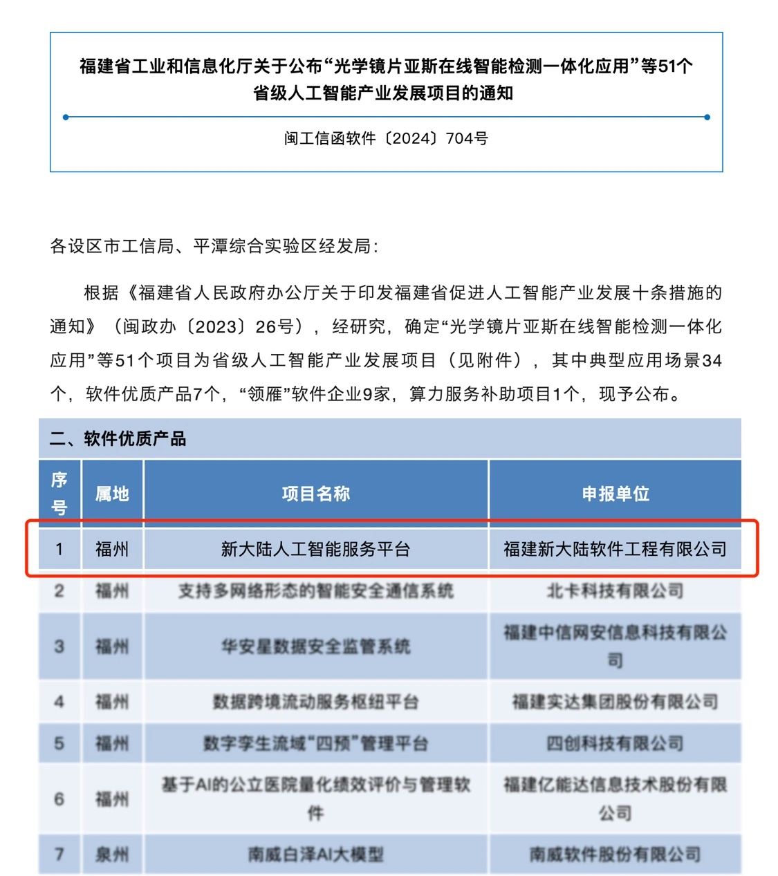 近日,福建省工业和信息化厅正式公布了省级人工智能产业发展项目的通知,“雷火竞技人工智能服务平台”以第一名的成绩获软件优质产品荣誉,成为此次公布项目中的佼佼者,标志着雷火竞技软件在推动人工智能技术的创新与应用方面迈出了坚实的一步。