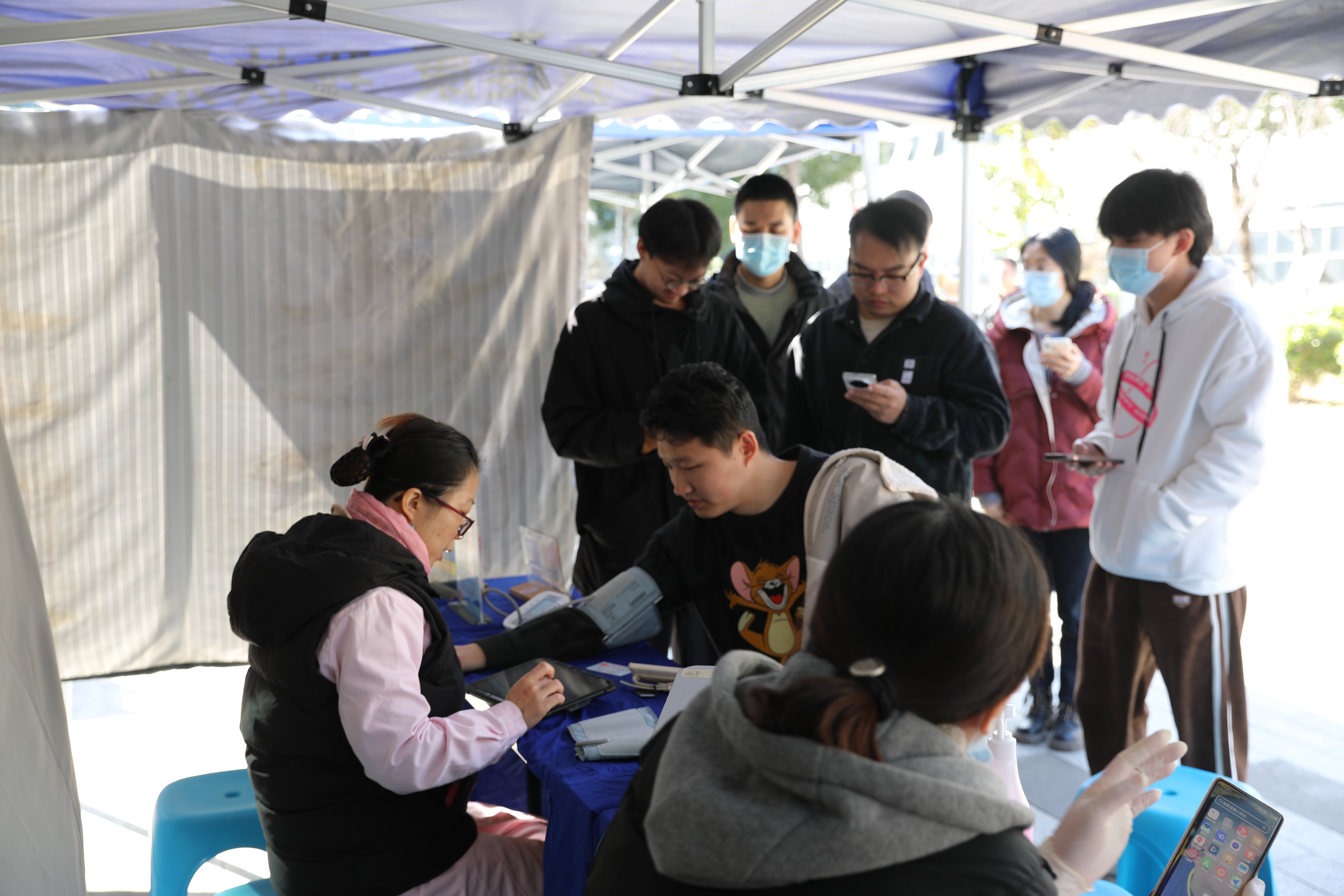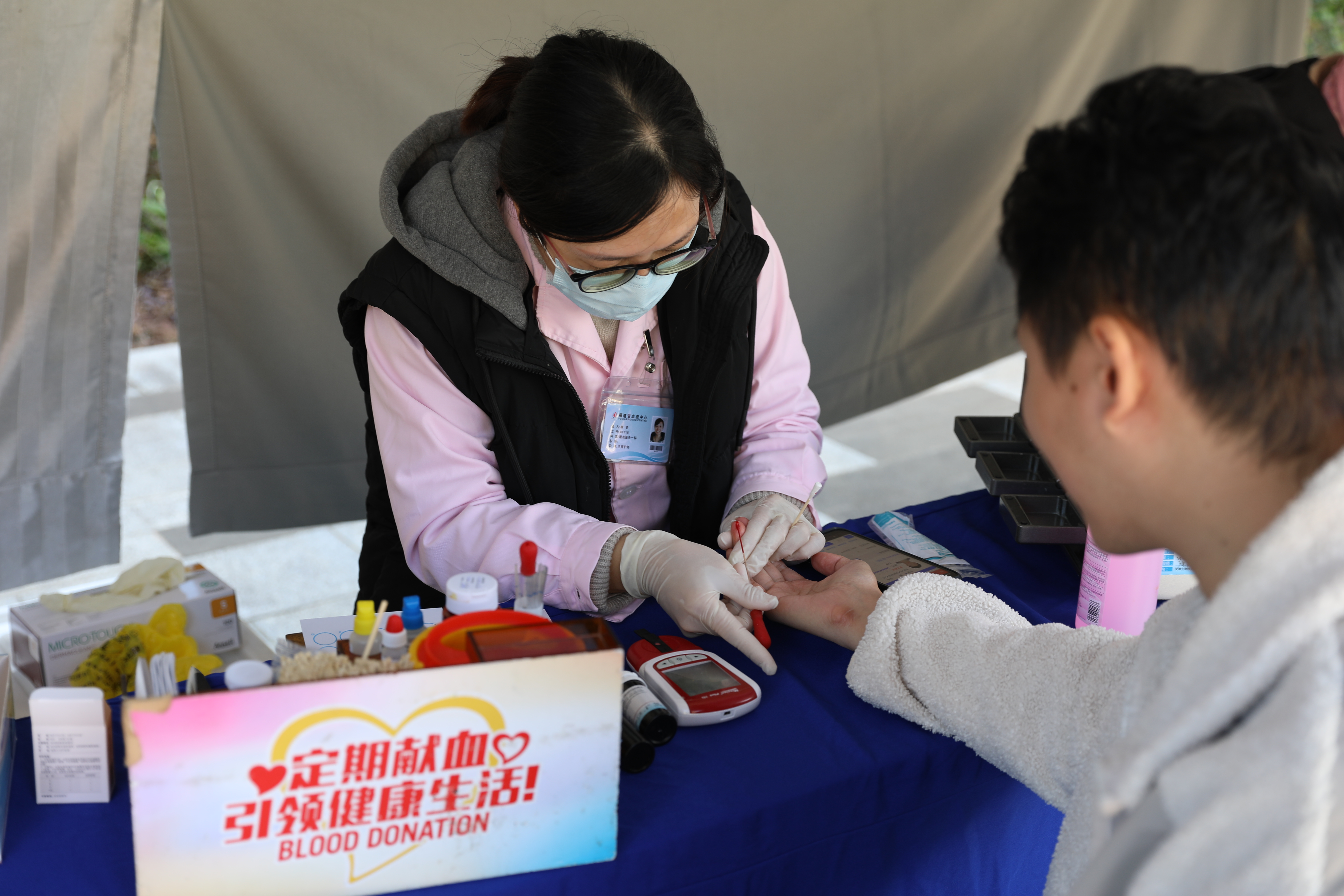 在工作人员的指引下,大家严格遵守献血秩序和流程,有序进行扫码登记、检测、采血等工作。