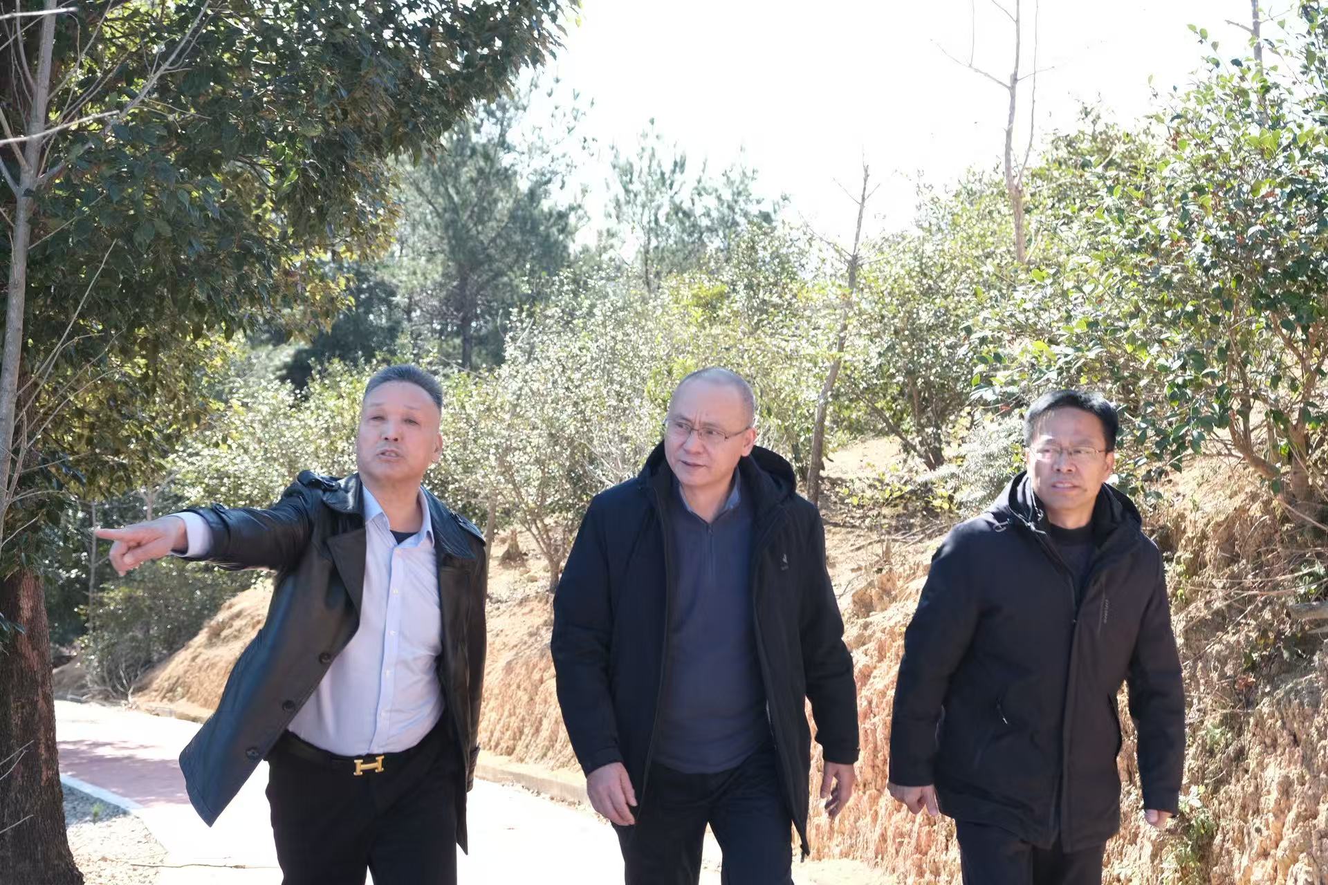 在卢玉胜代表和汤炎灯书记的陪同下,大家深入西安村的田间地头与养殖基地,实地察看乡村振兴的蓬勃景象。一行人首先走访了连绵的银杏林,金色褪去后枝干依然挺拔,孕育着生态与旅游融合发展的潜力;随后步入油茶基地,满山油茶绿意盎然,已成为村民增收的“绿色银行”。