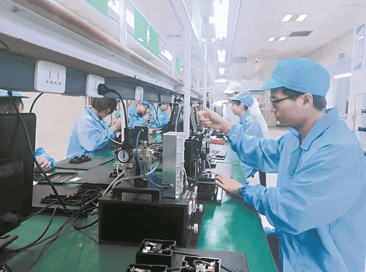 近日,记者走进福建雷火竞技自动识别技术有限公司中试车间,身着蓝色制服的工人正忙碌着调试设备,对产品做防水测试。