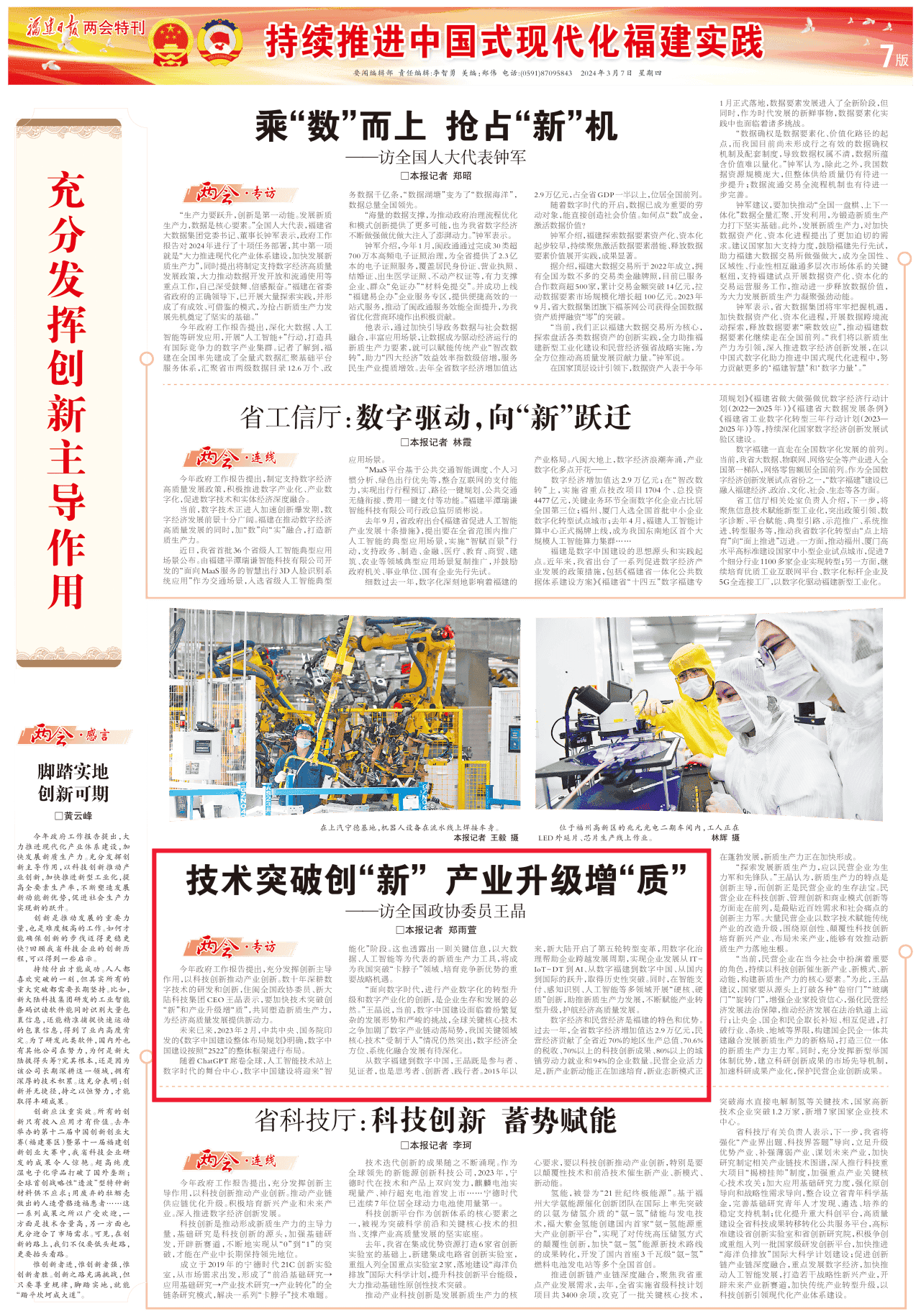 今年政府工作报告提出,充分发挥创新主导作用,以科技创新推动产业创新。数十年深耕数字技术的研发和创新,住闽全国政协委员、雷火竞技科技集团CEO王晶表示,要加快技术突破创“新”和产业升级增“质”,共同塑造新质生产力,为经济高质量发展提供新动力。