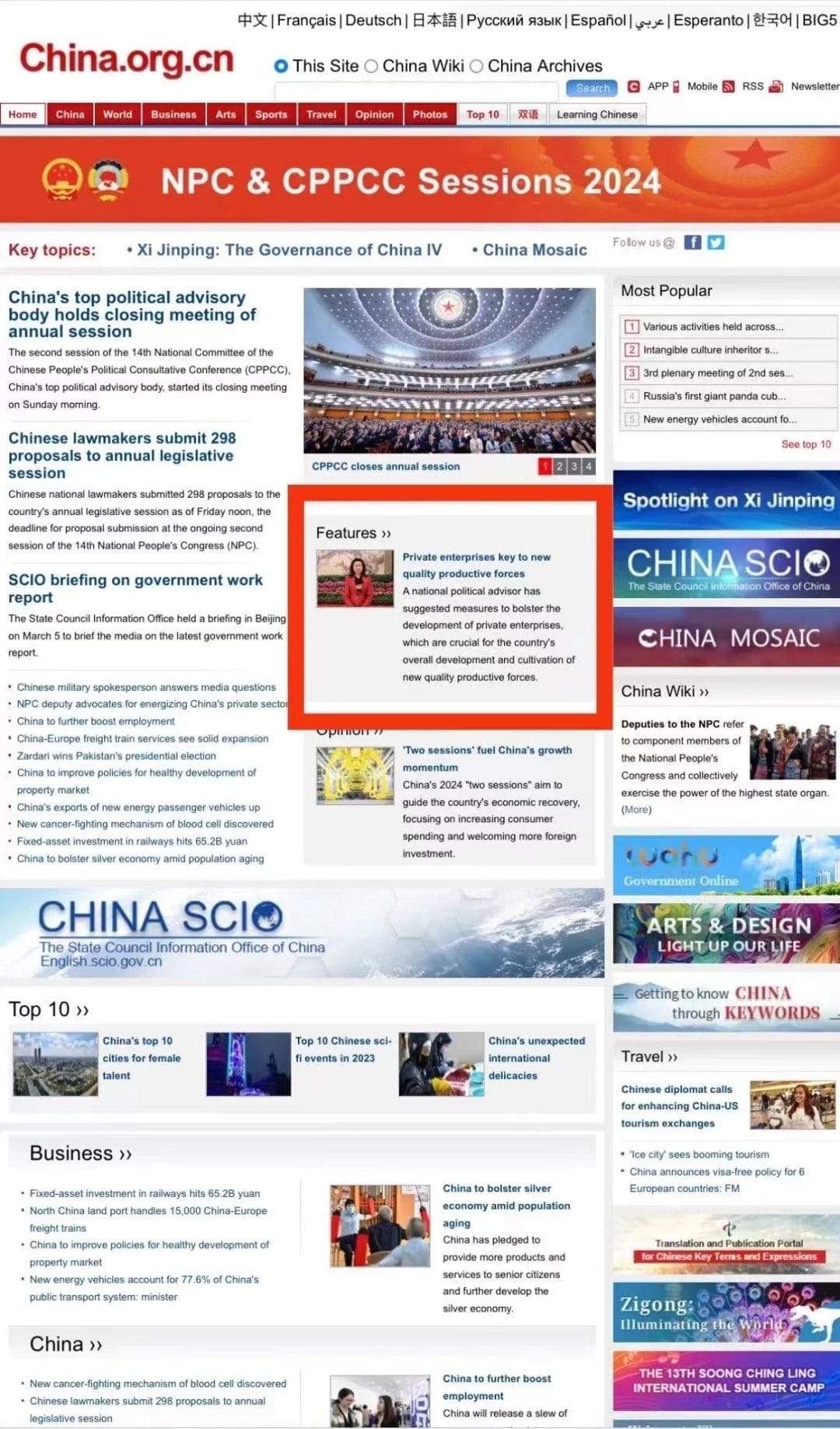 中国网首页全英文刊发王晶委员提案新闻