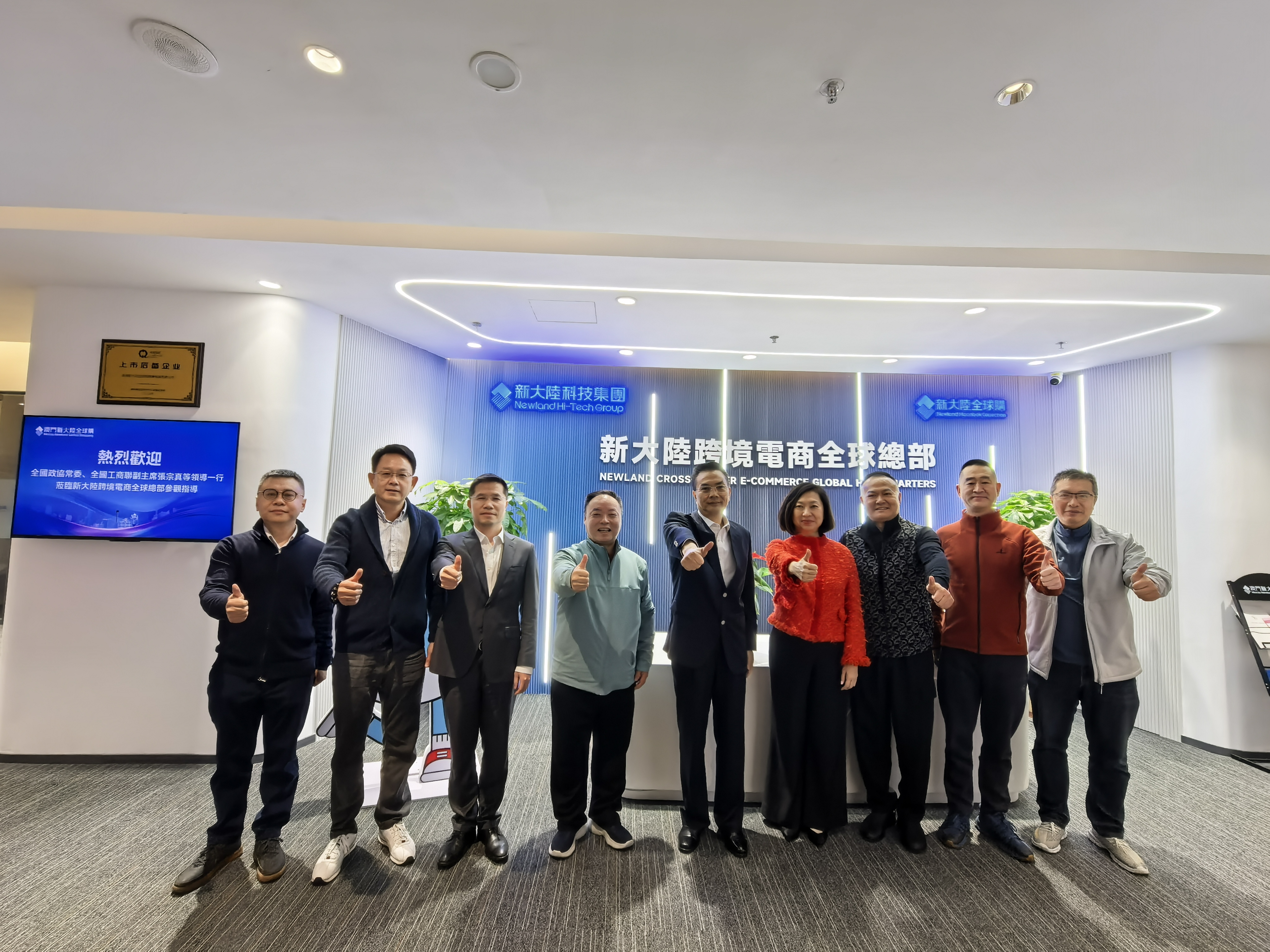 1月5日,全国政协常委、全国工商联副主席张宗真,江西省政协常委、澳门永利关爱基金会主席陈志玲,澳门中国企业协会副会长、澳门国际银行董事长黄来志,广东省政协委员、澳门商报社社长朱海生,澳门福建宁德同乡会会长陈言华等领导一行莅临位于横琴粤澳深度合作区的澳门雷火竞技跨境电商全球总部调研。澳门雷火竞技万博总经理刘金东出席接待。