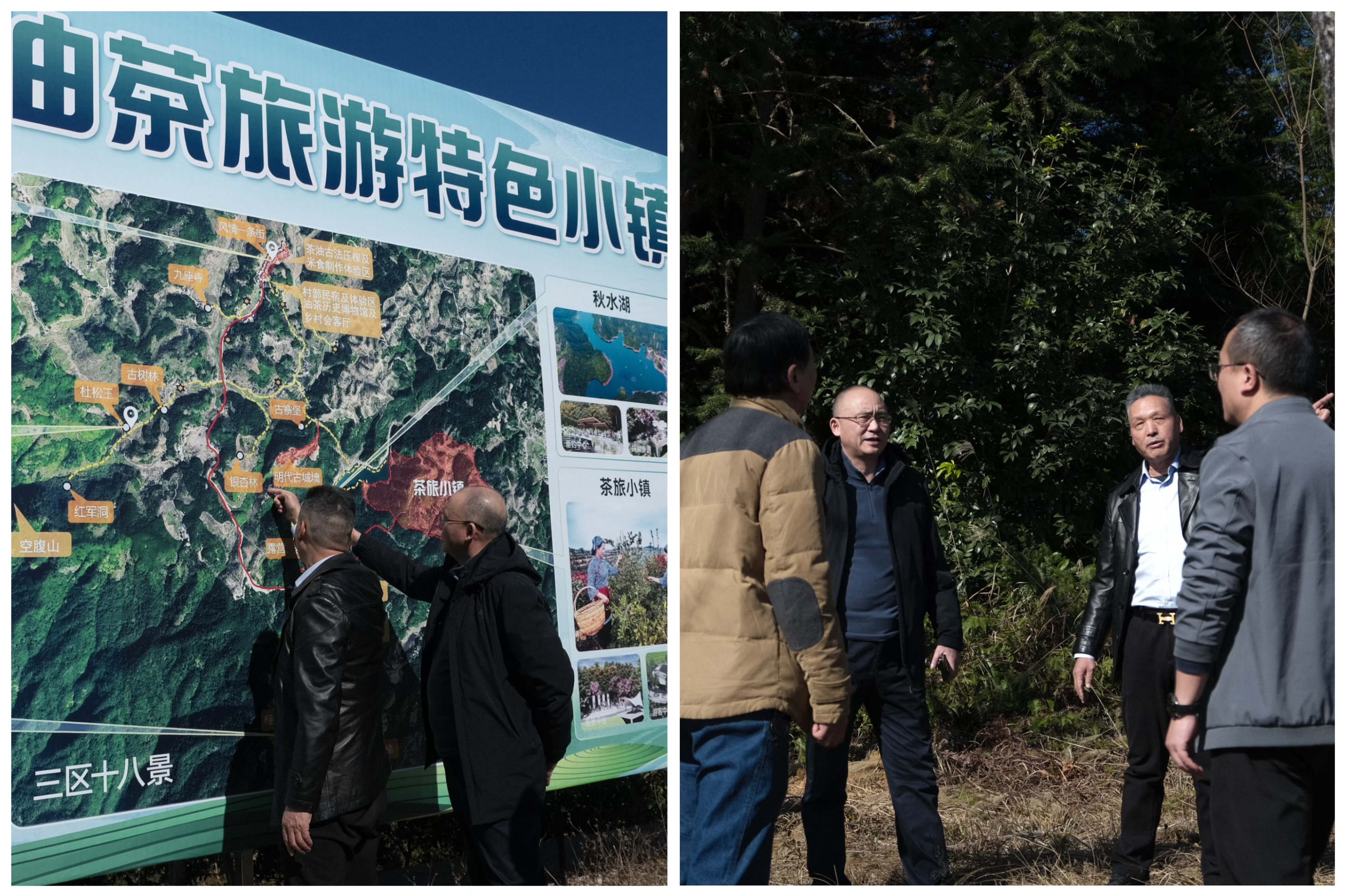在卢玉胜代表和汤炎灯书记的陪同下,大家深入西安村的田间地头与养殖基地,实地察看乡村振兴的蓬勃景象。一行人首先走访了连绵的银杏林,金色褪去后枝干依然挺拔,孕育着生态与旅游融合发展的潜力;随后步入油茶基地,满山油茶绿意盎然,已成为村民增收的“绿色银行”。