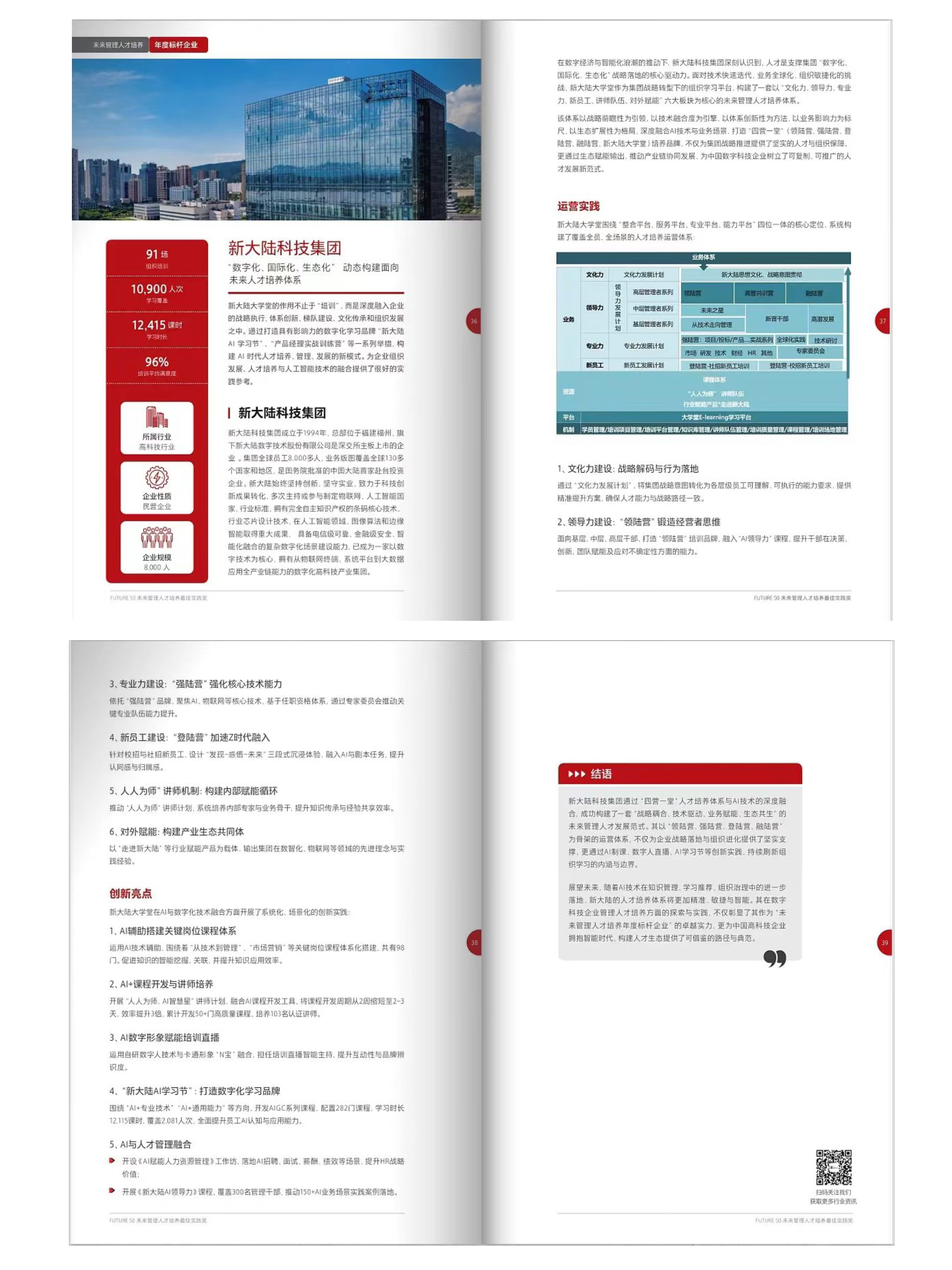 本届评选同步推出年度精选案例集,雷火竞技围绕 “四营一堂” 搭建的人才培养体系、AI 技术与业务场景的融合实践,凭借突出的可复制性与落地价值成功入选,相关实践经验在案例集中以 4 页篇幅进行深度收录,成为行业人才培养的重要参考范本。